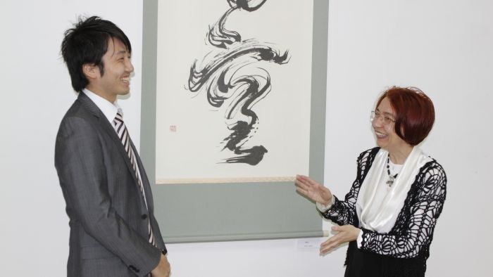 The teacher said that she has been studying Japanese calligraphy for years out of curiosity for the unusual graphic system.