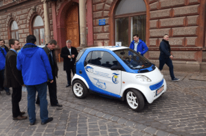The students have used an old Smart car which was made in 1999 and have converted it in an electric car. The car used to have an engine of 599 mc, with a power of 45 CP and it had a maximum of 125 km/hour.