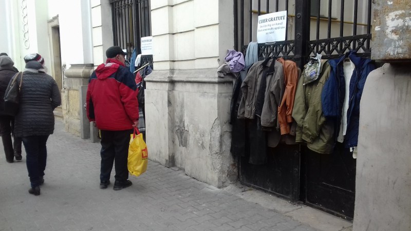 Thankfully, some people have thought about the people that have less and have to endure the cold. A priest has repeated the same charity act as last year and he has left some clothes’ hangers on the fence of the Unitarian church in Cluj-Napoca.
