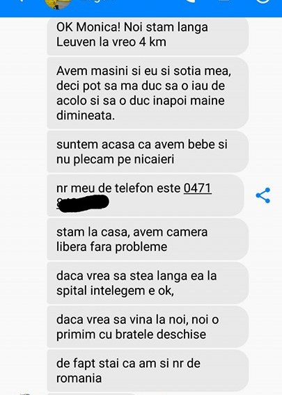 Besides Anca and Daria, other Romanians offered accommodation for Alina’s mother and offered to drive her back to the hospital.