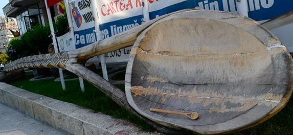 It measured 17,79 metres in length and it was 1,50 metres wide. It was made at the Centrul Cultural in Mioveni in 2013 and it was made to look like a traditional Romanian wooden spoon.