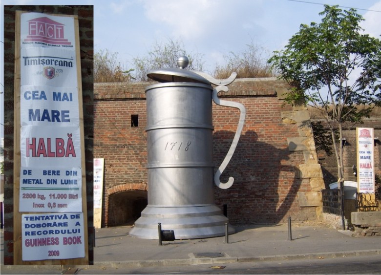 It was made in 2009 in Timisoara. The glass has a capacity of 11,000 litres, it is 6 metre high and it weighs 2,5 tons.