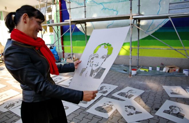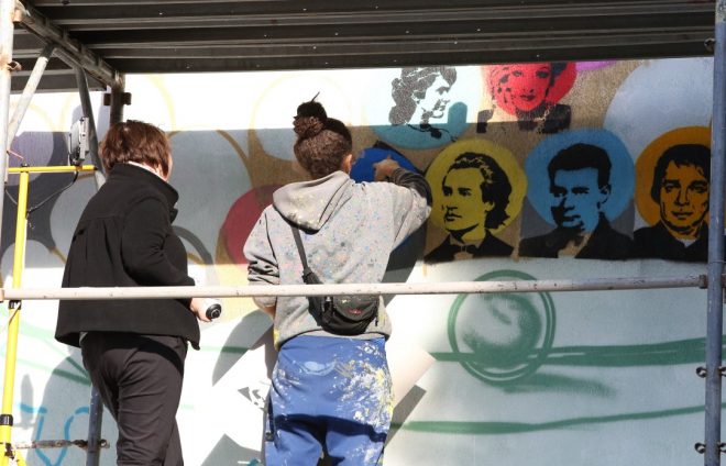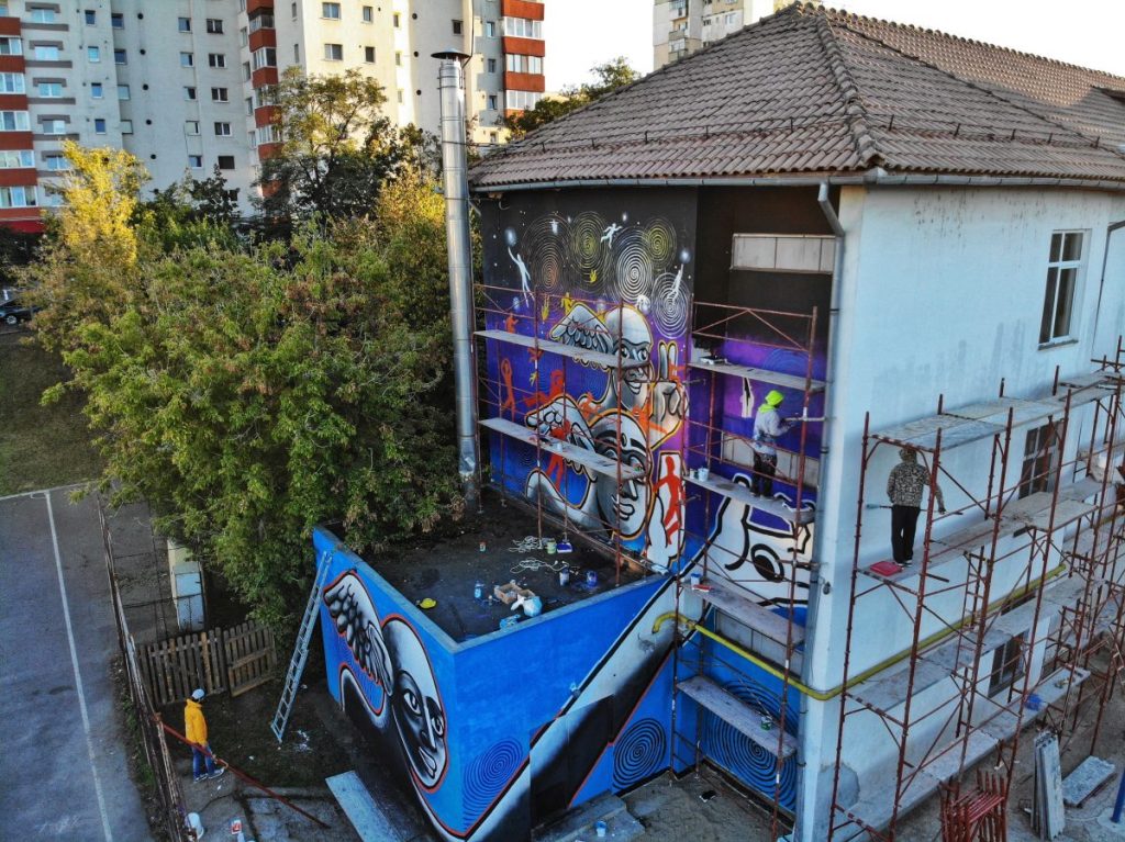 Meanwhile, another high school in Cluj-Napoca is also getting the street art treatment- Onisifor Ghibu highschool was painted by artist Kero and Ocu. The theme was Romanian personalities.