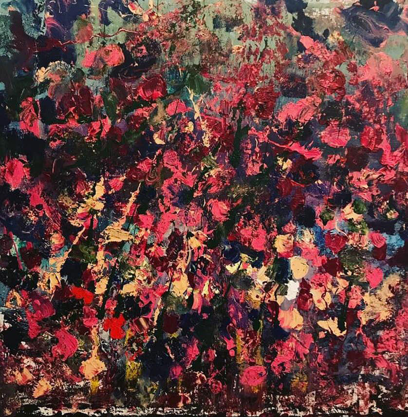 Every painting represents a life period, in other words a search. I feel that every person is in a never ending search. Either we search for material things, a house, a job, a new something or spiritual identity and meaning, we are always on the run. I decided to put my searching on canvases. For example, “Searching for spring” is a painting that emerged in the winter time when my soul desired the colour and warmth of spring. Another example is “Green Forest”, a piece that was brought to light after I got lost in an ocean of life embedded in nature. The examples can go on.