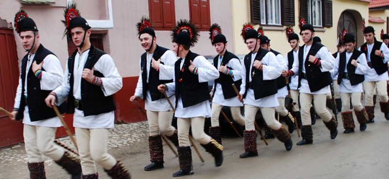 A group of young men goes from house to house to sing a special song about a goat ( on Christmas Eve as well). One man will dress as a goat and do the dance while the others sing. This dance is also done on New Year’s Eve in some parts of Romania.
