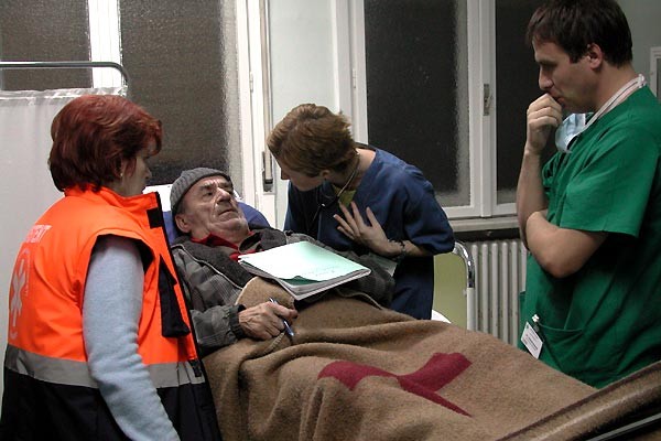 A dark comedy, directed by Cristi Puiu. Subject: Mr Lazarescu is sick, doctors decided to send him to another hospital. His health begins to deteriorate and they cannot seem to find another hospital for him.